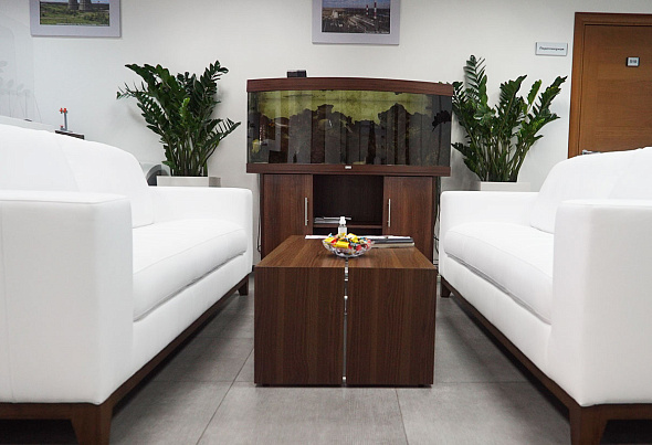 Оборудовали конференц-залы и переговорные комнаты. В зонах отдыха разместили диваны и кресла, журнальные столики. Также оборудовали корпоративные кухни.