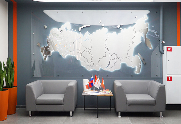 Каждое помещение получилось уникальным, а весь офис объединен общим стилем компании.
