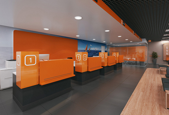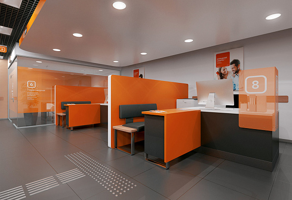 Задача по оснащению мебелью была решена совместно с московским брендинговым агентством. Проект реализован в соответствии с брендбуком банка.