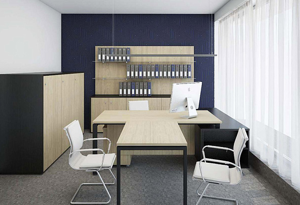 Основная идея оснащения офиса — единое пространство с понятным зонированием.